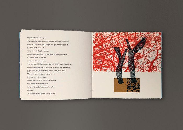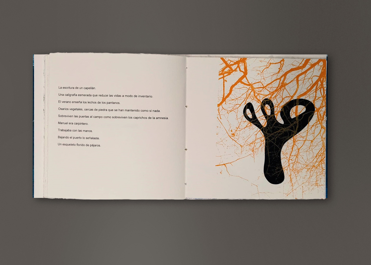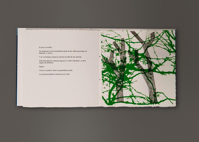 La incorporación de Fernando Menéndez Menéndez obedeció a otro hallazgo fortuito: al hojear un poemario en una librería, Domínguez-Gil reconoció en su voz poética la sensibilidad que el proyecto reclamaba. Tras el contacto, la colaboración surgió de forma espontánea y generosa. Se desarrolló con plena autonomía, sin imposiciones: imagen y palabra crecieron en paralelo, encontrándose de manera orgánica en las páginas del libro.